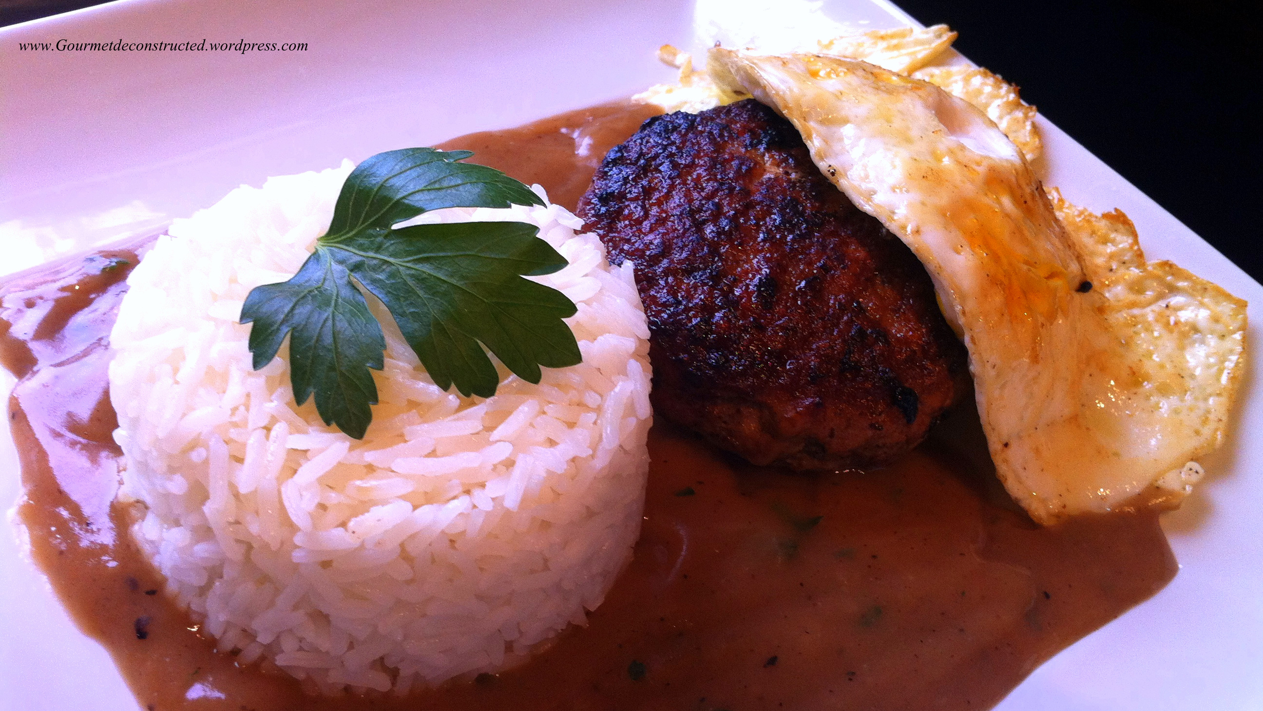 I am really not big on breakfast. It’s not that i don’t like eating it; it’s more the fact that I like to keep breakfast simple. Turkey bacon and eggs, waffles, simple omelets, and sometimes I even make pancakes. Today I wanted something a little different, and as usual, it needed to be relatively easy. This year I have been on a Hawaiian kick, since my trip there this past summer. My first day in Honolulu I was unable to sleep because of jet lag (Hawaii is 6 hours behind NYC), so my girlfriend and I decided on taking a quick walk at 5am, which ended up being a 8 mile walk. We came across a local food stand along the way which served up breakfast and lunch. Now i must say, Hawaiian breakfast dishes were an odd combination of things that I was not used to eating such as Portuguese sausage, Char siu and eggs, and Spam is a favorite there as well. Heck, Spam and Portuguese Sausage are served with rice and eggs in McDonalds as a replacement to bacon & ham breakfast. I don’t eat pork so these items did not appeal to me, but one local dish stood out to me, Loco Moco!