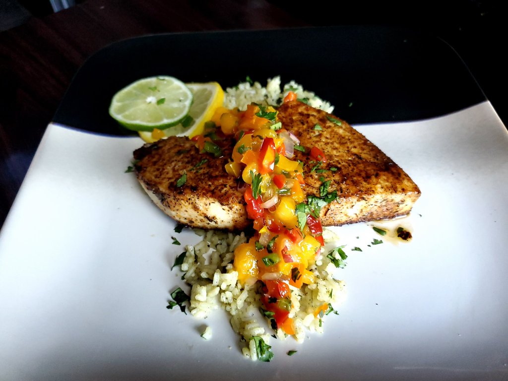 From the blackening seasoning to the coconut rice to the mango salsa the flavors meld together for such sweet harmony in your mouth. Simply amazing! We’re not local to Wulf’s but we were able to get quality swordfish and grouper at our local fish monger. My caveat, however, is that we grilled the swordfish & grouper but followed the recipe otherwise.