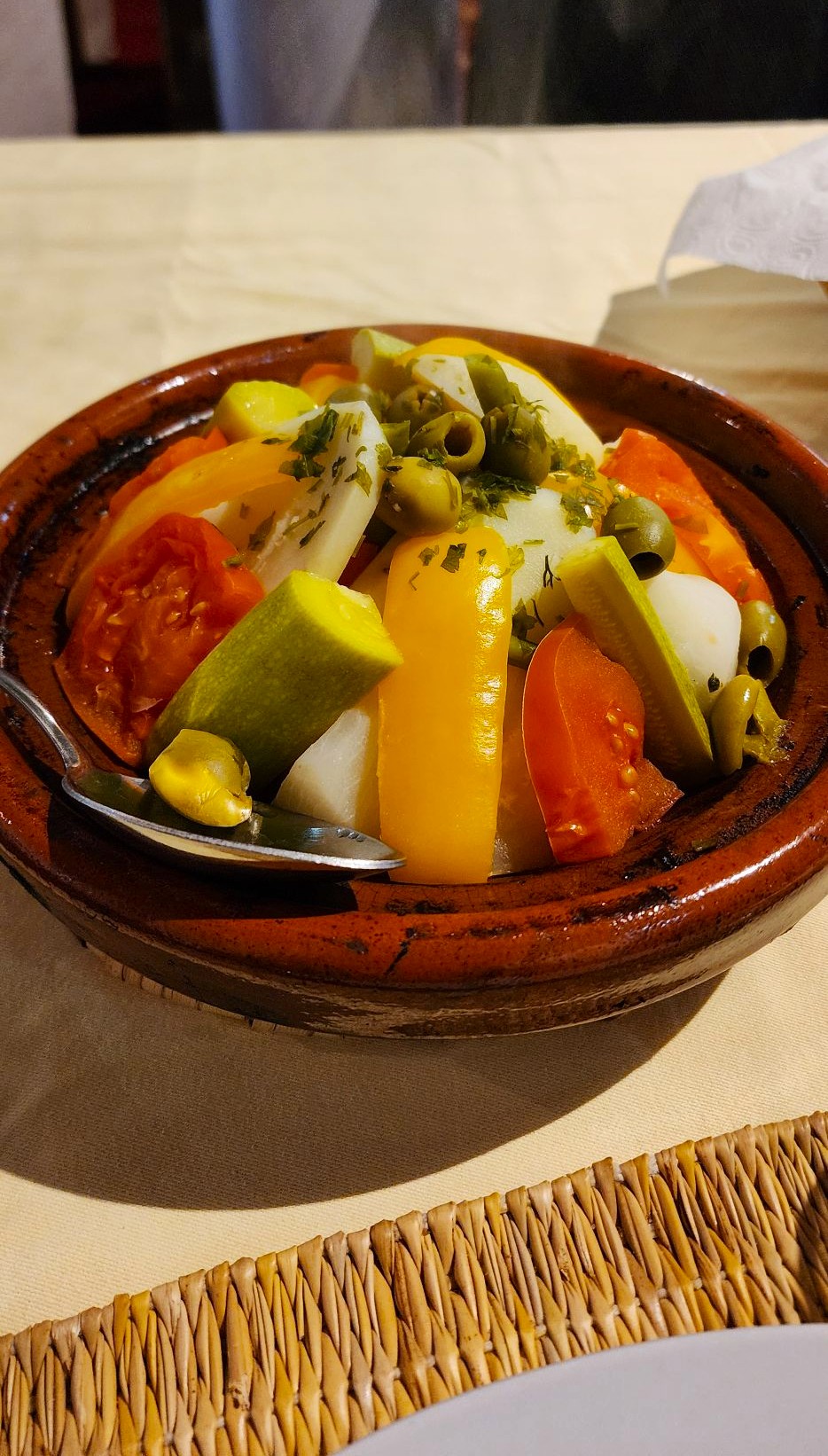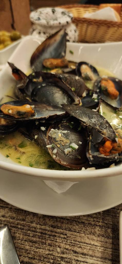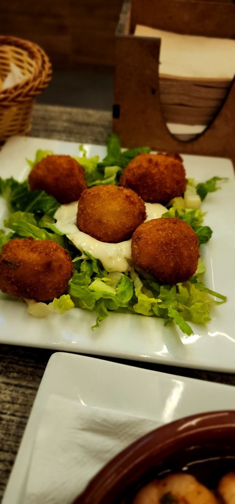 We came upon the restaurant Snack Taghazout on the waterfront and purchased 2 grilled “mixed meat” sandwiches that were a mix of beef spleen, chicken, and lamb, topped with olives and pickled vegetables. The sandwich itself did not look impressive, but that was deceiving, it was huge on flavor and perfectly seasoned, we were off to a great food start. We had dinner at Brasserie Guillaume Tell which serves Moroccan & Spanish fusion cuisine. We ordered some delicious tapas dishes, with the spicy shrimp, mussels with saffron garlic sauce, and chicken croquettes as the highlights of the night.