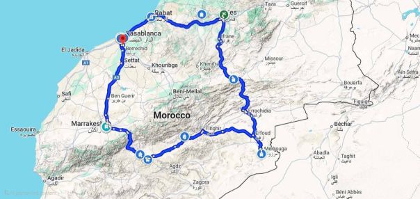We started our road trip in the coastal city of Casablanca, which is one of the largest and most important cities in Africa, both economically and demographically. We were flying from New York (JFK), and our plan was to rent a car and drive our way through the country with 2-3 day stops in each of these places: Marrakech, Dades Gorge (High Atlas Mountains), Merzouga (Sahara Desert), Fez, Rabat, and then back to Casablanca before flying home. I would cover over 1200 miles of driving on this trip, which seemed daunting for a first time visitor. After clearing customs we purchased 2 sim cards for our phones which is highly recommended. You will see the kiosks for these in the airport. You will have three choices of sim card companies to choose from: “Orange“, “INWI“, and “Maroc Telecom“.